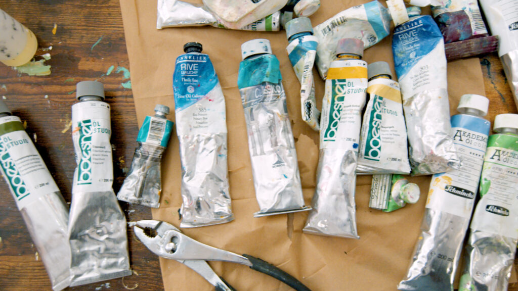 She speaks about knowing the receiver of a painting before it leaves her studio, sensing the presence of the future owner as she works. Watching the journey of a painting, moving through different hands and places before reaching its destination, confirms her belief that the work has its own path.